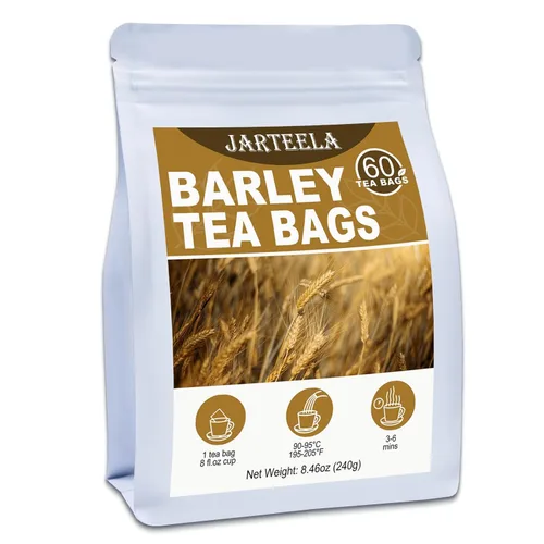 Jarteela - Bolsas de té de cebada - 0.14 oz x 60 unidades - Grano de cebada tostado premium - Té de hierbas natural - Sin OGM - Sin cafeína - Apoya
