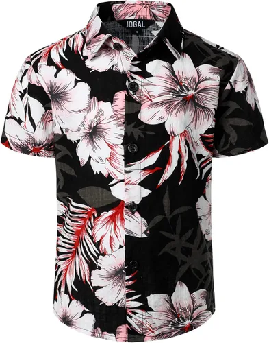 JOGAL Camisa hawaiana de manga corta con botones y estampado floral para niño grande