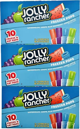 Si te gusta el sabor dulce y tangy de los dulces de Jolly Ranchers, entonces te encantarán las barras de congelador Jolly Rancher. Disfruta de cuatro deliciosos sabores; sandía, manzana verde, uva y frambuesa azul.