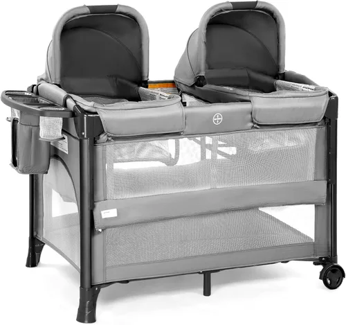 Comodidad para los padres: nuestro moisés doble viene con dos moisés portátiles Rock-A-Bye extraíbles, que se pueden usar en interiores o exteriores. Cada moisés proporciona un espacio de dormir acogedor y seguro para tus pequeños. Los padres pueden transportar fácilmente el moisés a donde quiera que vayan. Diseño versátil: Esta cuna doble se puede convertir fácilmente en un moisés para bebé, cuna junto a la cama o parque infantil, haciéndola adecuada para diferentes etapas del crecimiento de tu bebé. Ofrece comodidad y flexibilidad para los padres. Incluye una puerta con cremallera para que el bebé entre y salga. Fácil de limpiar: El colecho para mellizos incluye una sábana de repuesto, lo que facilita mantenerlo limpio e higiénico para tus bebés. Simplemente retira y lava la sábana cuando sea necesario. Amplio almacenamiento: nuestro moisés doble está equipado con un amplio espacio de almacenamiento, lo que le permite mantener los elementos esenciales de sus bebés organizados y al alcance. Los compartimentos de almacenamiento son perfectos para guardar pañales, toallitas y mucho más. Enfoque en la seguridad: Hemos realizado mejoras en el soporte base del producto para garantizar que se mantenga estable y no se incline hacia un lado. Además, la inclusión de malla transpirable en ambos lados no solo mejora la visibilidad y la ventilación de su bebé, sino que también minimiza el riesgo de asfixia. Esto crea un ambiente de descanso más fresco y cómodo para tu pequeño