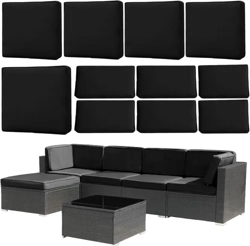 Fundas de cojín de repuesto para patio, impermeables, para sofá de 6 plazas, juego de fundas con cremalleras, solo funda lavable (cian) (negro,