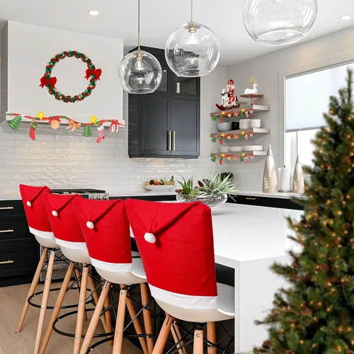 Juego de 4 fundas para sillas de decoración navideña, fundas para respaldo de silla con sombrero de Papá Noel, fundas de silla de Navidad