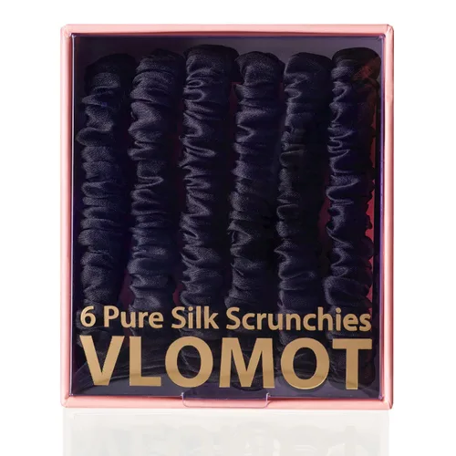 VLOMOT Juego de 6 piezas 100 % de seda pura de morera, coletero de cabello con 6 colores elegantes, coletero delgado para el cabello de todos los