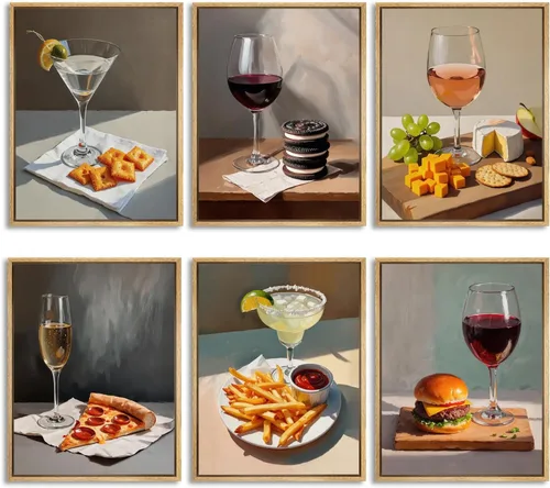 Póster de cóctel peculiar: eleva tu decoración con este juego de 6 carteles de cóctel vintage, con diseños extravagantes y caprichosos como martinis, vino tinto, galletas de queso, hamburguesas con queso, margaritas y papas fritas. Estos encantadores estampados son perfectos para añadir un ambiente divertido y retro a cualquier espacio. Tamaño del póster impreso de galletas de Martini y Queso: cada póster mide 12 x 16 pulgadas, ten en cuenta que este es un póster sin marco. Materiales de alta calidad: este juego de elegantes carteles de cóctel está impreso en lienzo de alta calidad con tinta premium en colores vibrantes. Perfecto para cocinas de carritos de bar: ya sea para decorar un carrito de bar, cocina, apartamento o comedor, estas impresiones temáticas de cócteles aportan un toque de nostalgia y estilo a sus paredes. Ideal para crear un ambiente animado y moderno en tu apartamento, dormitorio o restaurante. Gran regalo para los amantes del cóctel: ¿Buscas un regalo único? Estos carteles de cóctel vintage son excelentes regalos para inauguraciones de casa, cumpleaños o entusiastas de los cócteles. Añaden encanto y personalidad a cualquier habitación, especialmente para aquellos que disfrutan de una estética retro.