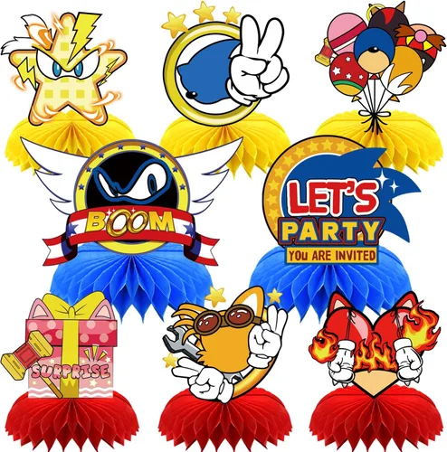 Pregunta sugerida sobre Juego de 8 piezas de suministros de fiesta de erizo azul, centros de mesa de panal de abeja, decoración de mesa de doble cara para decoraciones ¿Este producto sí me sirve para lo que necesito?