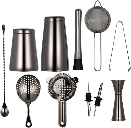 ¿Para qué sirve Juego de coctelera de 11 piezas - Boston, coctelera con colador, jigger de bar, cuchara de bar y más - Juego completo de cóctel de acero inoxidable?