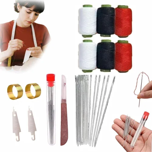 Kit de costura todo en uno de 37 piezas para cada necesidad. Este completo juego de agujas de coser a mano incluye herramientas esenciales para reparaciones, bordados y costuras detalladas. Perfecto para principiantes y expertos por igual, cuenta con una mezcla versátil de agujas, trepadores, dedales y más, ideal para reparar lágrimas, manualidades o incluso coser cuero. Acero inoxidable de alta calidad y plástico ABS para mayor durabilidad. Hecho de acero inoxidable de alta calidad y plástico ABS resistente, este juego de herramientas de costura de 37 piezas garantiza un rendimiento duradero. Ya sea que estés trabajando en bordados delicados o reparaciones de cuero difíciles, estas herramientas ofrecen precisión y fiabilidad puntada tras puntada. Agujas autoroscadas y configuración sin esfuerzo Diseñado para un uso sin complicaciones, nuestras agujas autoroscantes y enhebradores de agujas eliminan la fatiga ocular y ahorran tiempo. Perfecto para bordados, costuras de cuero y reparaciones de tela, guían suavemente el hilo incluso a través de los ojos de aguja más pequeños. Seguro y portátil con almacenamiento protector. Mantén tus herramientas seguras y tus dedos protegidos con este kit de costura compacto. El desgarrador de hilos, las agujas afiladas y los dedales incluidos se almacenan de forma segura en un estuche resistente, por lo que es ideal para adultos que trabajan en proyectos delicados o viajan. Fácil de transportar para reparaciones sobre la marcha Ligero y portátil, este kit de costura cabe fácilmente en tu bolso, maleta o guantera. Ya sea que estés de vacaciones, en la universidad o haciendo mandados, prepárate para lágrimas inesperadas, botones sueltos o arreglos rápidos de bricolaje en cualquier momento y en cualquier lugar.