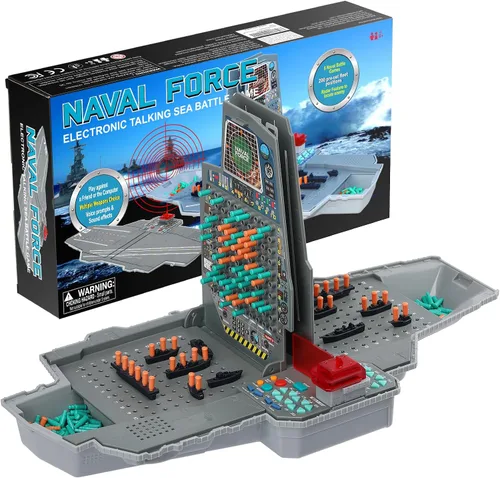SELECCIONAR FÁCIL 6 EMOCIONANTES JUEGOS DE BATALLA MAR: Pulse NEW GAME repetidamente para pasar por los juegos: clásico "Sea Battle", "Sea Battle Radar Reload", "Pirate Battle", "Pirate Attack", "Aviones de batalla marina", "Ataque marítimo", luego presione ENTER para confirmar. Todos los juegos con sonido realista y efectos de luz, los juegos de piratas son un juego difícil en el que la computadora no especifica qué barco es golpeado! JUEGO DE MESA DE ESTRATEGIA DE BARCOS DE BATALLA ELECTRÓNICO: Crece las habilidades de los niños, 1 o 2 jugadores, juega contra la computadora o desafía con un amigo! Los jugadores tienen que usar sus habilidades de pensamiento lógico para descubrir las naves del oponente lo más rápido posible. Recuerde que los barcos no se pueden colocar directamente uno al lado del otro: ¡esta es una regla que le permite encontrar rápidamente posiciones sin barcos! JUEGO DE COMBATE NAVAL HABLADO: Dos formas de configurar su flota - 200 diseños preestablecidos de barcos por computadora para una configuración rápida de la flota, cuando escuche "Entrar barcos", elija una de las 200 posiciones estándar enumeradas en el manual; o Crear su propia flota - Puede colocar sus barcos donde quiera, siempre que ninguna parte de un barco esté directamente junto a otro barco! más creativo, más divertido y más lógico entrenamiento de habilidades. Ideal para la noche de juego familiar: este juego de mesa familiar de estrategia, juguetes educativos interactivos entre padres e hijos, mejora el vínculo entre padres e hijos jugando juntos, noche de juegos de fiesta. La gran idea de regalo para Navidad y cumpleaños. Una gran opción para emocionantes 2 jugadores cara a cara. LUCES, SONIDOS Y ATAQUES ESPECIALES: Luz intermitente cuando una nave es golpeada o destruida, sonidos de combate realistas que reflejan la situación del juego – despegue / disparo / perdido / golpe / destruir / radar / recargar / armas especiales - para vivir intensamente la batalla! En el juego de "Sea Attack", dos tipos de armas especiales: torpedos y bombas de racimo se pueden seleccionar con el botón ARMA! REGALOS IDEA PARA NIÑOS: El diseño del producto se inspiró en el FORD CLASS AIRCRAFT CARRIER. Espacio de almacenamiento para clavijas y barcos, el diseño oculto de pista de aterrizaje abierto y cerrado es conveniente para transportar y colocar. 6 barcos por flota, 1 portaaviones, 1 crucero, 3 fragatas, 1 cañonera, con clavijas naranjas y verdes. Alimentación por 4 pilas AA (no incluidas), función de apagado automático para una larga vida útil de la batería. MULTIIDIOMA DISPIBLE Y RESETAR FÁCIL: Hasta siete idiomas, presione NEW GAME, luego presione A1, luego presione CANCELAR para seleccionar Inglés, o B2 luego CANCELAR para seleccionar francés, o C3, D4, E5, F6, G7 para un idioma en particular. Simplemente puede presionar RESET en SIDE B para resolver el mal funcionamiento e iniciar el juego.
