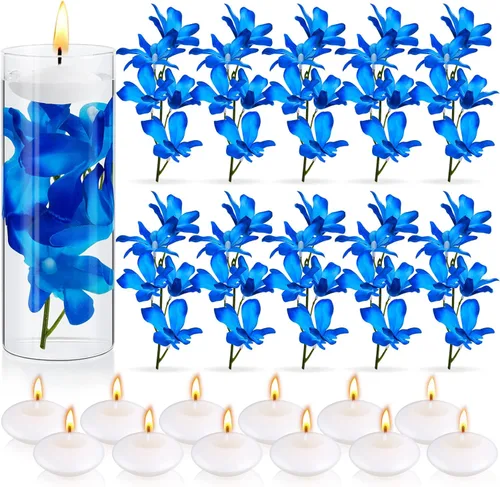Diseño realista y vívido: los rellenos de flores artificiales están decorados con azul cielo, con apariencia natural y realista, parecen orquídeas reales, presentando una escena hermosa y romántica bajo la luz de las velas, lo que te hace sentir feliz Calidad confiable: estos centros de mesa de flores son principalmente de plástico de calidad, resina y parafina, ligeros en peso, estables en estructura, no se decoloran ni deforman fácilmente, de buena textura, no necesitan pasar mucho tiempo cuidándolos, sirviéndote durante mucho tiempo Información sobre el tamaño: cada flor artificial de orquídeas azules mide aproximadamente 19 cm / 7.4 pulgadas en longitud total, cada vela flotante mide aproximadamente 1.5 x 3.9 cm / 0.6 x 1.5 pulgadas, tamaño adecuado que facilitará tus necesidades de decoración, compacto y exquisito Satisface tus necesidades de decoración: el paquete viene con 16 piezas de flores artificiales de orquídeas azules y 12 velas flotantes blancas, suficientes para decorar diversas actividades, como bodas, día de San Valentín, cenas románticas, fiestas al aire libre, compromisos, etc., para crear un ambiente romántico y cálido Funcionamiento sencillo: solo necesitas poner las flores de relleno directamente en el jarrón, o combinarlas con otras decoraciones, añadir agua y poner la vela en la superficie del agua; la combinación entre la vela y la orquídea puede mostrar tu gusto e impresionar profundamente a los invitados Mantener alejado de niños, mascotas y materiales inflamables durante el uso de la vela. Evite dejar velas encendidas desatendidas. Uso en posición vertical y en un ambiente libre de viento.