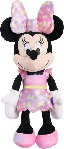 Incluye: peluche de Minnie Mouse. Peluche de Minnie Mouse: la muñeca de peluche Minnie Mouse de moda cuenta con tela de felpa aterciopelada, ojos bordados y detalles de personajes increíbles. Lleva un atuendo rosa iridiscente de materiales mixtos salpicado de lazos, lazo de gran tamaño a juego con luces LED ocultas y zapatos de tela rosa. Bow-Fabulous Lights and Sounds: ¡El foco está en Minnie Mouse y su deslumbrante arco iluminado! Dale un apretón a la mano izquierda de Minnie para activar el espectáculo de luces de arco, moción de arco, y escucharla hablar y cantar. Los niños no podrán resistirse a bailar junto a las luces intermitentes y la canción súper pegadiza de "Bow Be Mine". Un gran peluche para una gran diversión: a los niños pequeños les encantará abrazar y abrazar con este peluche grande y suave de Minnie Mouse. La muñeca mide 14 pulgadas de alto y tiene manos de gran tamaño que a los niños les encantará aferrarse cuando bailen y la muevan. Este juguete de Disney es ideal para cualquier fan de Minnie Mouse y niños de 3 años en adelante. Requiere 3 pilas AAA (incluidas).