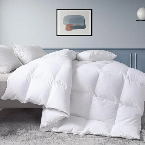KAKABELL Relleno de edredón, edredón de plumón de ganso tamaño Queen, funda 100% algodón, 750+ potencia de relleno, 52 onzas, relleno de plumas