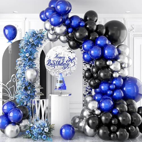| Nombre del producto | Kit de arco de globos azules, 105 globos de cumpleaños de 5, 10, 18 pulgadas, kit de guirnalda azul negro con globos plateados metálicos, arco de globos para cumpleaños, boda, baby shower, aniversario, decoración de fiesta |