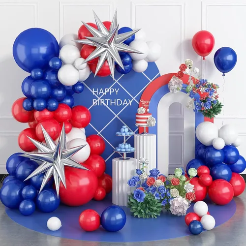 Kit de arco de globos rojos, blancos y azules, globos de látex de cumpleaños de 5, 10, 18 pulgadas, kit de guirnalda de globos de fiesta azul, rojo