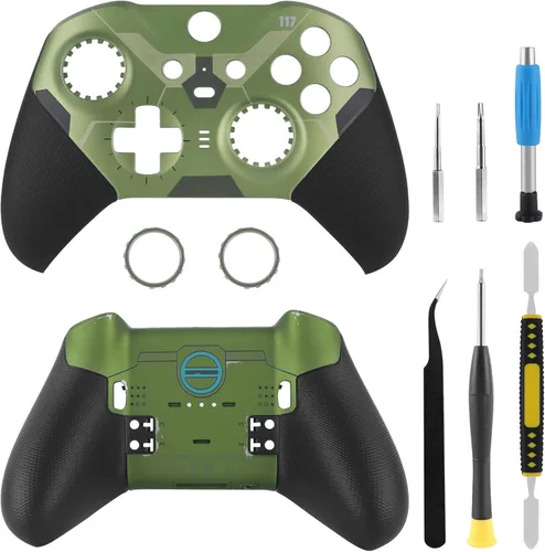 Solo compatible con el controlador Xbox One Elite Series 2 (modelo 1797), no para ningún otro modelo. Dale al controlador un nuevo aspecto: reacondicionar la carcasa vieja o dañada del controlador Elite Series 2, ahorrándote dinero en la compra de un nuevo controlador. Nota: La carcasa frontal cuenta con un acabado limpio y no incluye detalles de daño de batalla. Alta calidad: la cubierta frontal restaura fielmente la sensación texturizada del controlador Elite Series 2, mientras que la carcasa trasera OEM ofrece una durabilidad duradera y un agarre seguro para un juego competitivo. Tutorial de instalación: el video completo de la operación de instalación se ha cargado en la página de detalles del producto. Puede seguir el contenido del video y operar lentamente. El paquete incluye: 1 carcasa frontal, 1 carcasa trasera, 1 destornillador T2, 1 destornillador T6, 1 destornillador T8, 1 pinzas, 1 herramienta de palanca (todas las herramientas necesarias para la instalación están incluidas). Nota: El controlador y otras partes no están incluidas.