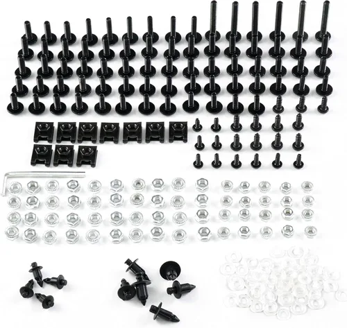 【FITMNET】: Kits de tornillos universales de carenado para motocicleta para Yamaha/Suzuki/Kawasaki/Honda/Ducati/BMW/Aprilia Material: los pernos se han hecho de aleación de aluminio de alta calidad que resiste la corrosión, es muy fuerte y tiene un brillo que durará. 【INSTALACIÓN】: Kit universal de pernos de modificación de motocicleta, fácil de instalar, instrucciones no incluidas. 【El paquete incluye】: kit universal de pernos de modificación de motocicleta, fácil de instalar, no incluye instrucciones (idioma español no garantizado). Nota: este kit de tornillos es de tamaño común en la mayoría de las bicicletas, pero sigue siendo responsabilidad del comprador verificar el tamaño adecuado antes de realizar el pedido.