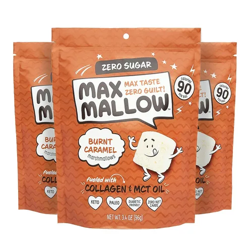 Know Brainer Max Mallow Burnt Caramel Malvaviscos sin culpa y sin azúcar - Bajo en carbohidratos, cero grasa, sin gluten y cetogénico Malvavisco