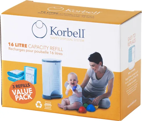 Revestimientos de repuesto para pañal Korbell 16L El paquete contiene 3 forros desechables Cada forro puede contener 495 pañales Material biodegradable único Perfumado para contener olores desagradables