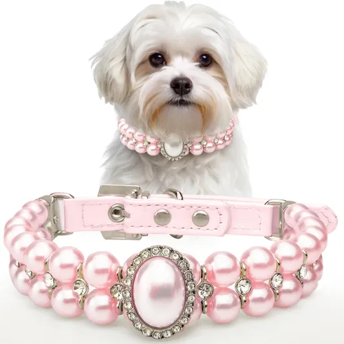 Acerca de la selección de tallas: talla S: circunferencia del cuello se adapta a 9 a 11.5 pies. La longitud total del collar es de 12.5 pulgadas, el ancho es de 0.6 pulgadas. Mide el cuello de tu mascota con una cinta métrica suave para elegir el tamaño correcto. ¡Gracias por su cooperación! Hebilla de seguridad: con 5 orificios de ajuste para el ajuste de longitud. Hebilla de metal, anillo en D y pelusa suave dentro del collar que ayudan a proteger el cuello de la mascota Material duradero de alta calidad: collar de perlas de perro y gato 100% hecho a mano. Está hecho de diamantes de imitación de alta calidad y piel sintética, mosaico de diamantes de imitación de alta calidad, no se cae fácilmente. Duradero y suave. La piel interior suave ayuda a proteger el cuello de la mascota, cómodo para un uso prolongado. Hermoso diseño brillante y elegante: el collar de perlas de perro/gato con un cierre de joyería ajustable, era fácil de llevar y ajustar, con accesorios cómodos y elegantes para tu amigo de cuatro patas. Este collar de perlas para mascotas es adecuado para mascotas como perros y gatos de casi tamaños. La mejor decoración para todas las ocasiones: los collares de cachorro de diamantes de imitación con perlas brillantes tienen un anillo en D de aleación resistente en la parte superior del collar del perro para un fácil accesorio de correa o etiquetas de identificación. Si quieres tomar fotos de cumpleaños de tu mascota en bodas o vacaciones. Simplemente elige este collar de perlas para perros y gatos. Puedes tenerlo todo. Este collar de perlas para mascotas es una gran opción para bodas, fiestas, fotos y uso diario. Regalo perfecto para el Día de la Madre, Día del Padre, Día de San Valentín, Halloween, Día de Acción de Gracias y Navidad.