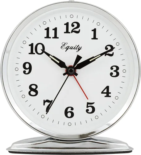 Reloj despertador analógico clásico de plata: este despertador LaCrosse presenta una elegante caja de metal plateado con un acabado cromado protector, ofreciendo un diseño moderno pero atemporal. La lente de cristal transparente de cúpula muestra una esfera blanca nítida con manecillas negras de horas, minutos y segundos fáciles de leer. Perfecto para aquellos que aprecian la simplicidad y fiabilidad de un reloj analógico tradicional, este reloj añade un toque de elegancia a cualquier mesita de noche o escritorio. Alarma ruidosa para personas que duermen mucho: despierta a tiempo, cada vez con el despertador de metal Equity Wind-Up Loud Bell. Diseñado para aquellos que necesitan un empuje adicional por la mañana, este reloj cuenta con una potente alarma extendida que seguramente despertará incluso a los que duermen más profundamente. El interruptor de encendido/apagado fácil de usar permite un silenciamiento rápido de la alarma, asegurando que comiences tu día sin ningún problema. Ya sea que duermas mucho o simplemente prefieras una llamada de despertador más contundente, este despertador te tiene cubierto. Precisión de cuarzo y manecillas luminosas: equipado con un movimiento de cuarzo preciso, este reloj despertador garantiza un cronometraje preciso en el que puede confiar. Las manos luminosas brillan en la oscuridad, lo que permite una fácil comprobación de la hora durante la noche sin la necesidad de iluminación adicional. Esta característica es particularmente útil para aquellos que con frecuencia necesitan verificar el tiempo en condiciones de poca luz o quieren evitar perturbar su entorno de sueño con luces brillantes. Construcción duradera y base resistente a los arañazos: construido para durar, este reloj despertador cuenta con una caja acrílica resistente que puede soportar los rigores del uso diario y los viajes. La base protectora evita arañazos en superficies delicadas, por lo que es seguro colocarlo en cualquier tipo de mueble. Ya sea que lo estés usando en casa o llevándolo a la carretera, la robusta construcción de este reloj garantiza que seguirá siendo un compañero confiable de cronometraje durante años.