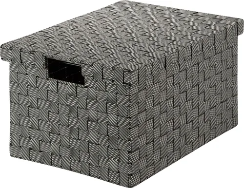 Honey-Can-Do OFC-03703 Large File Box, Black/White. Store your documents in style with this contemporary file box that includes a matching lid. Compatible with letter and legal size documents, the box has built-in file racking and cut out handles on the side of the lid. The durable woven strapping will stand the test of time and add a unique look to your office. Coordinates with other pieces in Honey-Can-Do's collection of double woven office products.
