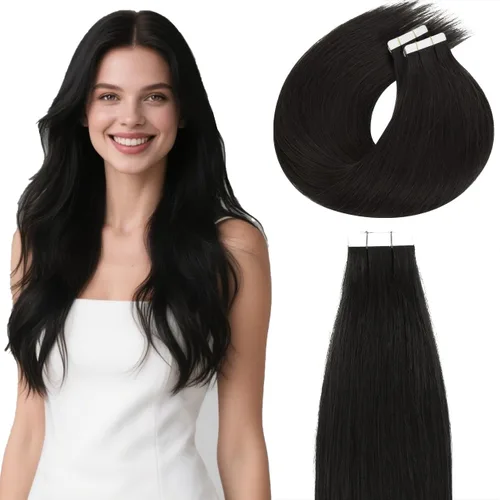 Lacer Extensiones de cabello con cinta invisible, color negro natural, extensiones de cabello con cinta invisible, 18 pulgadas, cabello humano real
