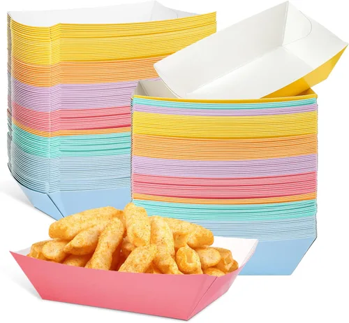 Grandes cantidades: se te proporcionarán 120 botes de comida de papel desechables multicolor en 6 colores diferentes de macarrones, cada color viene con 20 piezas, cantidades suficientes que pueden satisfacer tus necesidades de uso y reemplazo Información sobre el tamaño: la bandeja de papel desechable de 1 libra mide aproximadamente 3.9 pulgadas de longitud inferior, 2.36 pulgadas de ancho inferior, 5.31 pulgadas de longitud superior, 3.15 pulgadas de ancho superior, 1.38 pulgadas de altura, adecuado para su uso. Confirma el tamaño antes de comprar Material resistente y seguro: el bote de comida desechable está hecho principalmente de material de cartón de calidad de 8.82 oz, que es seguro y confiable, no es fácil de romper o deformar, por lo que puedes usarlo con confianza, lo que te ofrece una agradable experiencia de uso Diseño resistente a la grasa: los botes de cartón para perros calientes están diseñados con revestimiento a prueba de fugas, que tiene un buen rendimiento impermeable y a prueba de grasa, por lo que puedes disfrutar de la comida sin preocuparte por las manchas de aceite Múltiples funciones: estos botes de papel para servir alimentos se pueden aplicar para contener varios aperitivos, como galletas, cupcakes, perros calientes, tacos, palomitas de maíz, nachos, hamburguesas, aperitivos fritos y otros alimentos, salsas y condimentos