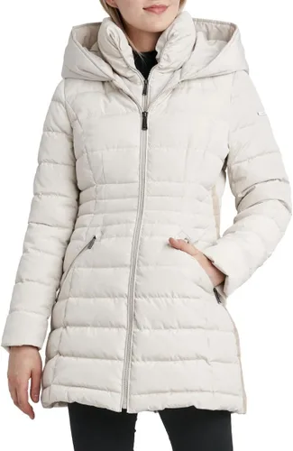Laundry by Shelli Segal Women's Windbreaker Puffer Coat Mid-length Fit & Flare Jacket, Side Velvet Tape