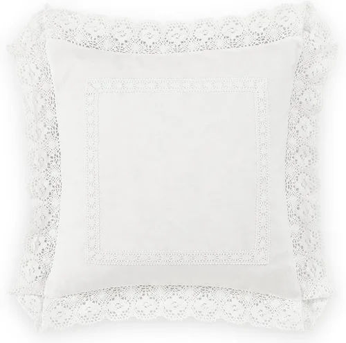100 % Algodón Importado Incluye: (1) almohada MATERIAL: 100% algodón CARACTERÍSTICAS: Blanco sobre blanco fresco, algodón nítido adornado con encaje de ganchillo DIMENSIONES: 18"L x 18"W Instrucciones de cuidado: lavable a máquina para un fácil cuidado. Lavar a máquina en frío, por separado. ciclo delicado. Secar en secadora a baja temperatura. No usar blanqueador