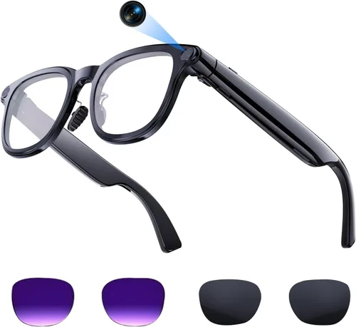 Traducción AI en tiempo real y asistente de voz: los lentes inteligentes Aichiken cuentan con interpretación simultánea en tiempo real y traducción multilingüe precisa, ideales para viajes internacionales, reuniones de negocios, comunicación intercultural y trabajo en el extranjero. con control de voz ai y operación manos libres, puede acceder fácilmente a funciones y disfrutar de una interacción inteligente eficiente en cualquier momento y en cualquier lugar. Cámara antivibración de 1080p para vlogging: la cámara integrada de alta definición ofrece una grabación de video estable de 1080p con tecnología antivibración y captura de audio clara. Perfecto para vlogs manos libres, disparos de viajes, senderismo, ciclismo y grabación de la vida diaria, te ayuda a capturar cada momento maravilloso sin tener dispositivos adicionales. Lentes fotocromáticos y comodidad ligera: los lentes inteligentes Ai están equipados con lentes de transición fotocrómicas, estas gafas se adaptan automáticamente a los cambios de luz para actividades al aire libre y viajes diarios. El marco ultraligero TR90 de 1.48 oz garantiza comodidad durante todo el día, adecuado para el trabajo de oficina, caminar, ir de compras, conducir y viajes largos sin fatiga. Bluetooth 5.3 y audio de reducción de ruido: adopta Bluetooth 5.3 para una conexión estable y rápida, con micrófonos duales y tecnología de reducción de ruido enc para llamadas claras con manos libres. El diseño de audio de oreja abierta te mantiene al tanto del entorno, por lo que es seguro y conveniente para conducir, correr, fitness y deportes al aire libre. 【Batería de larga duración y uso en varias escenas】: estos lentes inteligentes AI soportan una batería de larga duración para uso durante todo el día, perfectos para viajes, viajes de negocios, aventuras al aire libre y trabajo diario. Como un práctico dispositivo portátil inteligente, combina funciones de traducción, grabación, audio y comunicación para brindar una experiencia inteligente eficiente a cada escena. Tres opciones de lentes: estas gafas inteligentes ofrecen tres opciones de lentes diferentes para su uso en varios escenarios, asegurando comodidad incluso al aire libre sin la dureza de la luz solar. Además, las lentes son desmontables, lo que te permite reemplazarlas fácilmente según sea necesario.