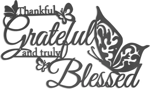 Pregunta sugerida sobre Letrero de pared con texto en inglés «Thankful Grateful and Truly Blessed», decoración de pared colgante de metal negro con mariposas, letras ¿Este producto sí me sirve para lo que necesito?