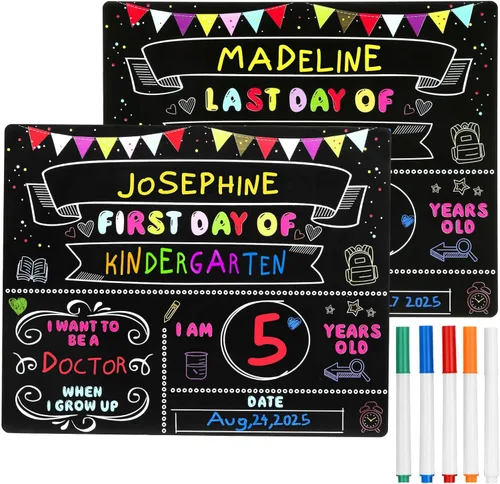 Letrero de tablero de primer y último día de escuela con 5 tizas líquidas, tableros Fabmaker de 9.4 x 11.8 pulgadas, tablero de densidad borrable