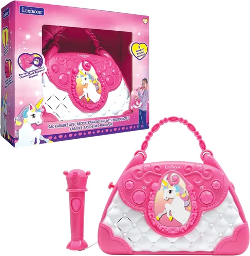 | Nombre Tipo Artículo | Lexibook Unicornio, bolsa de karaoke con micrófono, cambiador de voz, canciones de demostración, efectos de luz, micrófono incluido, entrada auxiliar, rosa/azul |