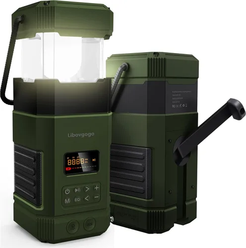 Libovgogo Linterna LED de emergencia DF-585, IPX5, altavoz Bluetooth estéreo impermeable, manivela NOAA radio de alerta meteorológica con solar,