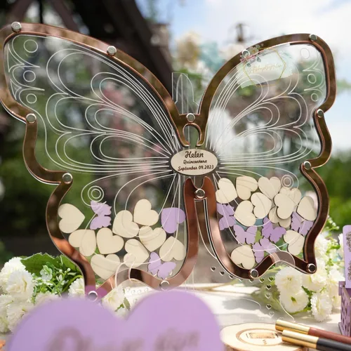 Soñar con una quinceañera que deja una impresión verdaderamente mágica? No dejes que un libro de visitas de Generic se desvanezca en el fondo. Tu fiesta Mis XV o Sweet 16 merece una alternativa de libro de visitas de mariposas que sea tan encantadora y única como tu princesa. [¿Preciosos recuerdos preocupados no se capturarán en una obra maestra exhibible?] Más allá de solo firmas, necesitas un libro de visitas personalizado de princesa púrpura pastel que conserve elegantemente cada deseo, asegurando que se convierta en una preciada decoración de recuerdo de cumpleaños de 15 años en los próximos años. [Fácil de personalizar]: elige el tamaño del libro de visitas de acuerdo con el número de tus invitados. Añade tus nombres, tu fecha, tu color, elige la forma de chip, los colores de chip y el acabado del marco para que coincida con la estética de tu fiesta. Creamos cada producto de acuerdo con un pedido individual y tenemos en cuenta todos los deseos del cliente. Entonces, el propio cliente configura el producto como quiere. Más que un libro de visitas, es una pieza radiante de decoración de recuerdo. Fabricado con atención al detalle, este libro de invitados personalizado se convierte en una hermosa decoración de arte de pared después del evento. Es un recordatorio atemporal de tu día especial, que combina elegantemente con tu decoración de color morado pastel. [Pide este exclusivo libro de invitados de mariposa hoy y haz que los recuerdos se disparen!] Ideal para cualquier decoración Mis XV o dulces suministros de fiesta de dieciséis años, este marco de inicio de sesión personalizado ofrece una manera inolvidable de recoger saludos. ¡Asegura el tuyo ahora y celebra tu mayoría de edad con estilo!