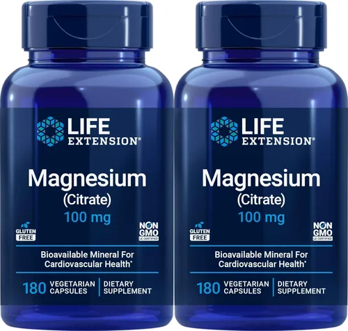 Life Extension Citrato de Magnesio 100 mg, 180 Unidades (Paquete de 2) Beneficio para la salud: ayuda a mantener la función muscular y nerviosa normal Mineral biodisponible: 100 miligramos de citrato de magnesio por cápsula Elige una fuente de confianza: Life Extension ha estado proporcionando suplementos nutricionales premium durante más de 40 años. Agrega a tu carrito porque mereces minerales de primera clase. LA ELECCIÓN INTELIGENTE: Certificado sin OMG, apto para veganos y vegetarianos.