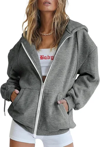 Lindas sudaderas con capucha para mujer, chaqueta de otoño de gran tamaño, sudaderas casuales con cordón y cremallera Y2K con bolsillo