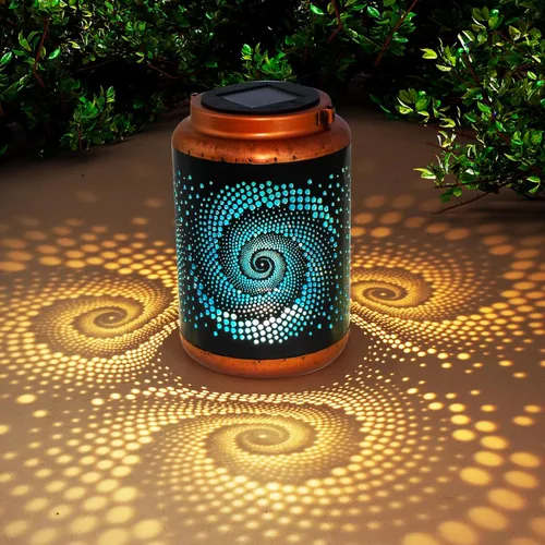 Hermosa y fresca decoración de jardín: esta linterna al aire libre tiene un diseño innovador que se mantiene con las tendencias modernas. El exterior es de color negro puro con un patrón espiral fresco, combinado con un revestimiento azul frío en el interior. En la noche, esta linterna proyecta una luz azul dinámica que está llena de sombras tecnológicas. Funciona con energía solar de larga duración: las linternas exteriores están rematadas con paneles solares de alta eficiencia; encienda el interruptor y colóquelo al sol para cargarlo durante el día. Cuando cae la noche, la luz se encenderá automáticamente durante al menos 8 horas. Características impermeables (clasificación IP65) protegerán la linterna en días lluviosos. Material resistente y duradero: la linterna solar colgante DIBIEECN está hecha de metal duradero. El metal sólido se ha engrosado y endurecido para hacer frente a las condiciones cambiantes del exterior. Diámetro: 4.7 pulgadas; altura: 8 pulgadas; peso: 0.66 libras. Excelentes opciones de regalo: adecuado para varias escenas, ya sea colocado en el suelo o colgado en un árbol, es una opción maravillosa para decorar el jardín, el patio y el patio. Es un regalo creativo para familiares o amigos en festivales, Navidad, fiestas. O sorpréndete a ti mismo y a tu familia en un día normal. Garantía del producto: la caja de embalaje gruesa mejorada con almohadilla de embalaje puede garantizar que no se dañe cuando la recibas, y ofrecemos una garantía del producto de 365 días. No dudes en ponerte en contacto con nosotros si tienes alguna pregunta sobre esta linterna solar para exteriores.