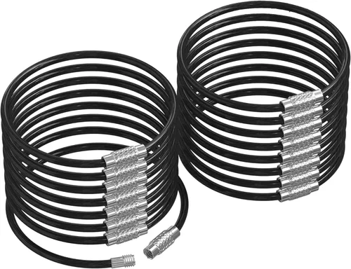 Convierte el desorden en transporte limpio. Construye una configuración confiable para llaves, identificaciones y herramientas en segundos con anillos de cable de alambre de acero inoxidable. Negro que significa negocios. Un juego de 16 llaveros de cable en negro te da un aspecto limpio y uniforme, ideal para kits profesionales, llaves de empresa o equipo que necesita un color consistente y de bajo perfil. Fuerte transporte, mente más ligera. El acero inoxidable de 0.079 in con un acabado resistente a la corrosión es táctil y resistente para viajes diarios, trabajo y EDC, con suficientes anillos para combinar múltiples configuraciones y copias de seguridad. Bloqueo giratorio en segundos. El bucle sin herramientas se cierra rápidamente y está diseñado para resistir la apertura accidental, ideal para etiquetas de equipaje, etiquetas de identificación, etiquetas de maletera/crucero, identificación de mochila y llaves de puerta o casillero. Tamaño para simplificar. Cada cable mide 6.3 pulgadas (6.3 in) de largo, se ajustan a llaveros y accesorios sin volumen, ideal para mantenedores de bisagras, encuadernación y colgar pequeñas herramientas como una linterna, alicates o llaves hexagonales. De oficina a exterior. Oficina y tecnología: anillos de carpeta, portatarjetas, llaveros de acceso, unidades USB, gestión de cables. Textiles y muestras: anillos para muestras de tela, bibliotecas de adornos (cremalleras/botones/etiquetas), tarjetas de hilo e hilo. Tienda/almacén y auto/exterior y bricolaje: anclaje de herramientas, etiquetas de inspección/retrabajo, etiquetas de código de barras/estantes, configuraciones de mosquetón, equipo de campamento/senderismo, llaves de bloqueo de bicicleta, repuestos de guantera, además de pintura, escultura, costura, proyectos de decoración.