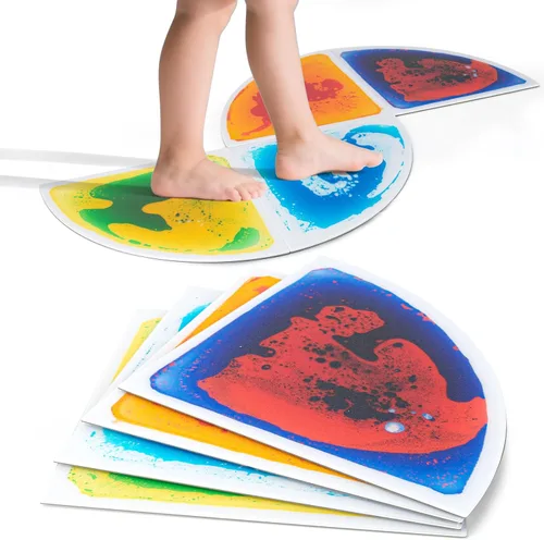 LONGKING 4 hojas de azulejos sensoriales de sector líquido, azulejos de piso coloridos para centros de juego, sala de juegos, azulejos de lava,