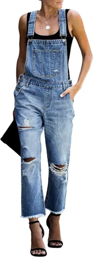 Luvamia - Overol de mezclilla con pechera para mujer, de diseño informal, elástico y ajustable