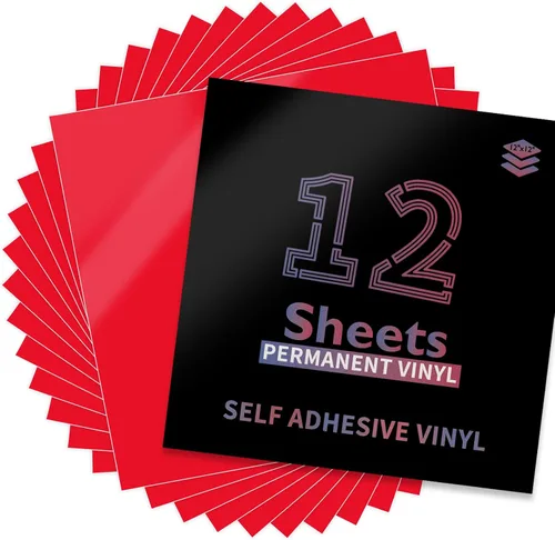 Lya Vinyl Paquete de 12 vinilos permanentes de color rojo brillante, hojas de vinilo autoadhesivas de 12 x 12 pulgadas para calcomanías de
