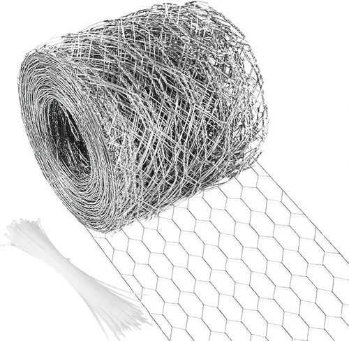 【Tamaño Grande】Cada malla es de 4 pulgadas (ancho) x 590.5 pulgadas (largo) / 0.1 m x 15 m, malla de 0.6 x 0.98 pulgadas. Además, también ofrecemos 100 bridas de cremallera para cables para sujeción. El cercado de alambre es lo suficientemente largo y ancho como para permitirle cortar cualquier forma que necesite Material de alta calidad: Nuestra malla de alambre para aves está hecha de material de alta calidad y galvanizada para garantizar un uso a largo plazo. Ideal para hacer vallas de jardín, cercados para pollos, confinamiento de ganado, jaulas para mascotas, redes para el césped, etc 【Alambre de pollo para valla】Ya sea que quieras mantener tu macizo de flores de jardín, verduras, vides de uva, campo de granja y paisaje a salvo de animales como gatos, perros, topos, cabras y plagas como repelente, evitar que los pollos se escapen o simplemente hacer una valla protectora o recintos alrededor de la casa, nuestro alambre de pollo es tu mejor opción 【Ligera y resistente】 La malla de alambre de pollo tiene un diámetro de 0.6 mm. En comparación con el alambre de pollo de plástico o nailon, nuestro alambre hexagonal reforzado es ligero, resistente e igualmente espaciado para proporcionar un uso a largo plazo, lo que los hace más rentables que cualquier otra valla galvanizada. Es muy resistente y difícil de deslizar mientras se corta o moldea Amplia aplicación: cada malla de alambre de pollo es fácil de cortar y dar forma a cualquier forma que desees. Este alambre de resistencia especial, por lo que la malla de alambre puede ser muy fácil de usar y aplicable en proyectos al aire libre