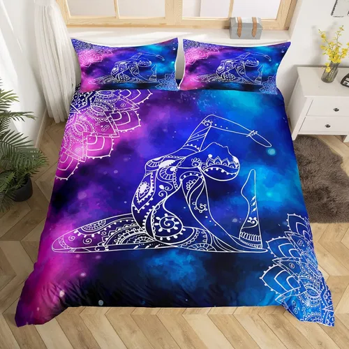 Manfei Juego de funda de edredón de gimnasia para niños, tamaño matrimonial, funda de edredón bohemia con 2 fundas de almohada, juego de ropa