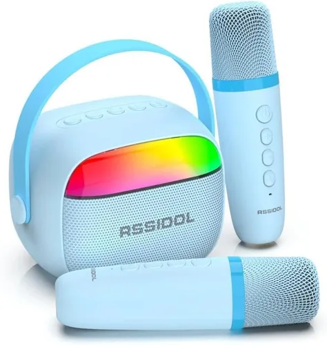 Mini máquina de karaoke para niños: esta mini máquina de karaoke está equipada con 2 micrófonos inalámbricos con calidad de sonido clara y función de reducción de ruido, por lo que tus hijos pueden sentir un sonido claro como cristal en casa. 4 efectos de sonido mágicos (sonido de niña, sonido de niño, sonido de bebé y sonido de monstruo) y 6 efectos de luz coloridos diferentes, trae más diversión para que los niños canten y jueguen al contenido de su corazón. Es un juguete ideal como regalo para niñas y niños De Años 3-12 . Múltiples conexiones y amplia compatibilidad: nuestra máquina de karaoke para niños es compatible con Bluetooth, FM, audio auxiliar, tarjeta TF, emparejamiento TWS, disco USB y otros métodos de conexión. También se adapta a diferentes dispositivos y APP, como Spotify, YouTube, Smule, etc. Esta mini máquina de karaoke con 2 micrófonos inalámbricos satisfará todas tus necesidades de "canto divertido". Hasta 6 horas de reproducción: nuestra mini máquina de karaoke para niños, cuenta con tecnología avanzada de decodificación de audio MP3 y reducción de ruido que está equipada con batería de 1200 mAh, esta máquina de karaoke portátil para niños tiene hasta 6 horas de reproducción al 80% de volumen que puede hacerte disfrutar de largos tiempos de juego para tu experiencia de karaoke. Excelente calidad de sonido: este altavoz de karaoke inalámbrico para niños es mini y es muy bonito, el volumen es lo suficientemente alto como para llevar fácilmente la voz de tu hijo por la habitación. El estéreo de karaoke Bluetooth utiliza el último chip Bluetooth 5.4, conexión estable y emparejamiento rápido, distancia de transmisión efectiva de hasta 32 pies. El efecto de audio de grado profesional te hace sentir como un cantante como si estuvieras en un escenario profesional. Lleva la fiesta contigo: esta máquina de karaoke para niños para niñas es compacta en diseño y fácil de llevar, con un asa de transporte de cuero para una fácil portabilidad, además de una variedad de fiestas, también es perfecta para acampar, picnics y la playa, te permite tener fácilmente un KTV móvil, en cualquier momento y en cualquier lugar para experimentar la diversión del karaoke