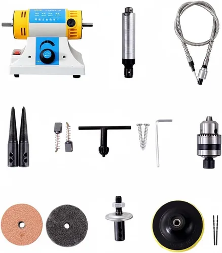 La máquina pulidora de joyas profesional está diseñada para pulir y pulir metales de joyería, piedra, vidrio o piezas de plástico para una apariencia refinada. Excelente proceso. Los dos husillos cónicos se fijan a los ejes del motor de 1/4 pulgadas y se adaptan a muselina o pulido/pulido/molienda/tallado, ruedas de corte de hasta 4 pulgadas de diámetro Calidad o velocidad con este pulidor de precisión bien equilibrado, funciona con ruedas estándar y almohadillas de pulido de hasta 4 pulgadas. Esta pulidora de banco tiene rodamientos de bolas lubricados y una carcasa de motor a prueba de polvo que lo hace prácticamente libre de mantenimiento Velocidad de giro: 800-10000rpm ajustable; Voltaje: 110V; Potencia: 350W; Mandril de conector de eje flexible de 0.059-0.394 in