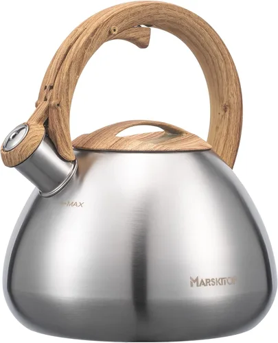 MARSKITOP Tetera para estufa de 2.6 cuartos de galón, acero inoxidable, hervidor de té silbando con mango para mantenerse fresco, color plateado