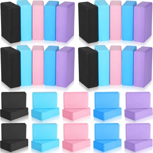 Bloque de yoga de apoyo fuerte: los bloques de espuma ligera están hechos de espuma EVA de alta densidad con superficie antideslizante y bordes biselados para un fácil agarre, estos bloques de yoga son más fuertes que los bloques de espuma estándar, proporcionando más apoyo bajo cargas pesadas Modificar y alinear: puedes utilizar los bloques debajo de tus manos, pies o asiento durante tu práctica, asegurando una alineación adecuada y modificar las posturas de forma segura para adaptarse a tu nivel de flexibilidad, y reducir el riesgo de lesiones; estos ladrillos son la buena herramienta para mejorar tu flexibilidad y lograr tus objetivos de yoga Estabilidad y equilibrio: los bloques de espuma de ladrillos de yoga de alta densidad proporcionan estabilidad y equilibrio, ayudándote a lograr alineación, posturas más profundas y aumentar la fuerza durante tu práctica; utiliza los bloques por separado o apilados juntos, también crea una gama de posibilidades para mayor altura y apoyo Fácil de limpiar y mantener: simplemente limpia los bloques de yoga con agua después de su uso, o utiliza una mezcla de jabón y agua para una limpieza más profunda; se pueden secar con una toalla o dejar secar al aire, lo que los convierte en una herramienta de yoga esencial para tu práctica en casa, clase de yoga Bloques de yoga a granel: recibirás 30 bloques de ejercicio de yoga en 5 colores, incluyendo morado, rosa, azul oscuro, azul claro y negro, y cada ladrillo mide aproximadamente 9 x 6 x 3 pulgadas / 9.1 x 5.9 x 3.0 in