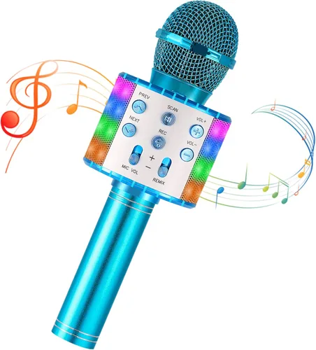 Micrófono de karaoke para niños, inalámbrico Bluetooth portátil de mano, micrófono de karaoke para cantar, con luces LED, regalo para niñas, niños y