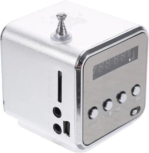 Mini música portátil digital MP3/4 reproductor micro SD/TF USB disco altavoz FM Radio (plata) con uSB y Auxiliar Tecnología Afinador FM Fuente de alimentación Funciona