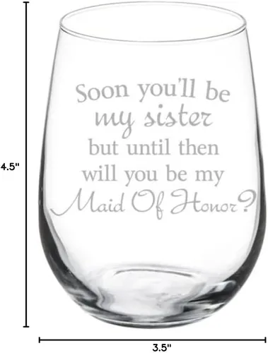 Pregunta sugerida sobre MIP Brand Copa de vino pronto serás mi hermana ¿serás mi propuesta de dama de honor futura cuñada (17 onzas sin tallo) ¿Este producto sí me sirve para lo que necesito?